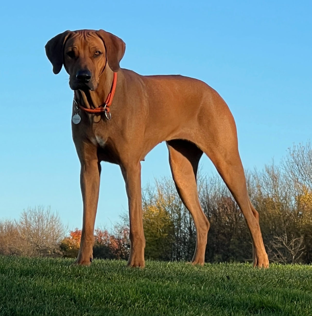 Caraki E'Stella ElishaHündin VDH 21/109 16019 * 26.01.2021 Rhodesian Ridgeback red wheaten HD A1, ED 0, OCD frei, Dilute N/N, DM N/N , IVA N/IVA, JME N/N, Genotyp Dermoid Sinus AT-GG, Ridge Rr 276098800271561  |