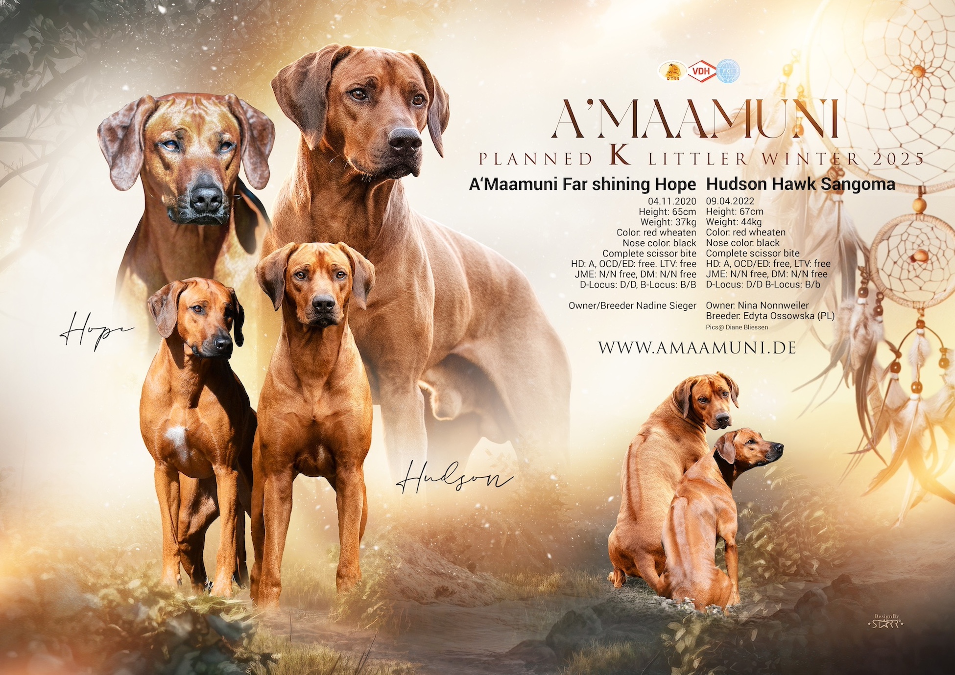 Heartbreakridge F-Wurf  | Heartbreakridge F-Wurf Dirk Morig Langenberger Weg 14 A, DE - 38723 Seesen 0172 2729654 | Decktermin 03.12.2025 | Wurftag 02.02.2026