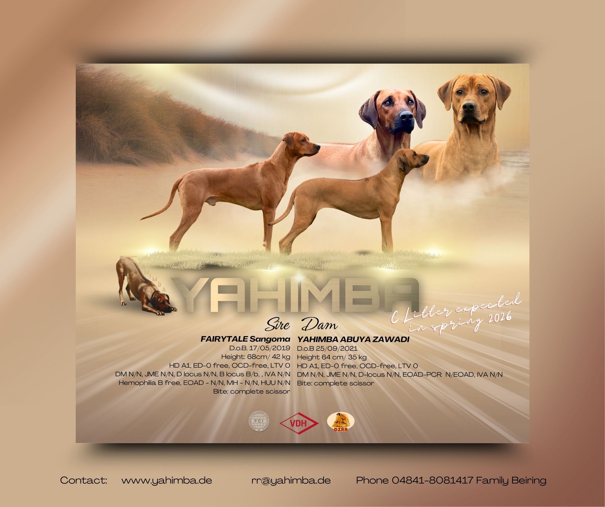 Yahimba C-Wurf  | Yahimba C-Wurf Rolf Beiring Grüner Weg 10 A, DE - 25813 Husum 04841 8081417 | Decktermin 25.01.2026 | 1.Wurftermin (29.03.2026)