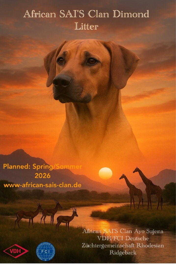 ![]() | African Sai's Clan Zuchttiere | Frank Sauter DE - 73072 Donzdorf, Gmünderstraße 09, +4915739015421 | Mit Freude planen wir unseren D- Wurf für das Frühjar / Sommer 2026 mit unserer Nachzuchthündin Sujena . Sie konnte schon bei zwei würfen ihre Mutter hingebungsvoll unterstützen und darf nun selbst eine stolze Mama werden. Bei Interesse an einem Welpen aus unserer Zuchtstätte würden wir uns über eine Kontaktaufnahme sehr freuen. TEL 015739015421 MAIL familie.sauter@web.de WEB www.african-sais-clan.de Birgit & Frank |