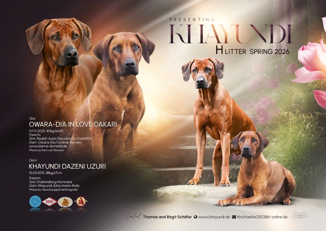 ![]() | Rusape Zuchttiere | Jenny Bieker DE - 53229 Bonn, Klausgarten 18, 0171 6200545 | Unser nächster Wurf ist Ende 2026/ Anfang 2027 geplant. Sollten Sie in dieser Zeit einen Rusape Rhodesian Ridgeback in ihr Leben integrieren wollen, freuen wir uns über Ihre Kontaktaufnahme (0171-6200545). |